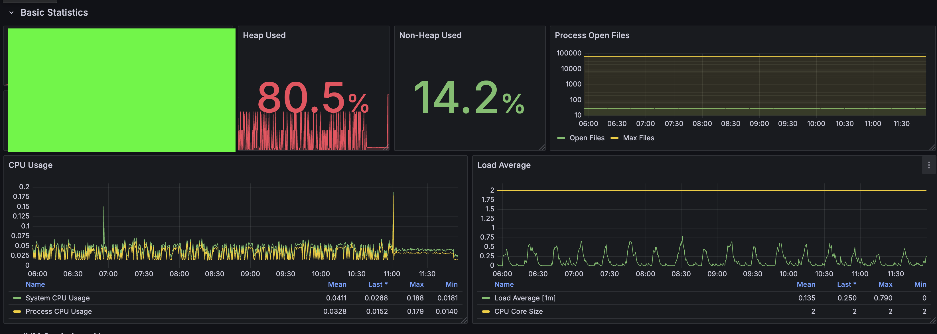 그러나 **Grafana는 JVM Heap Usage 경고를 쉬지 않고 터뜨렸다.**