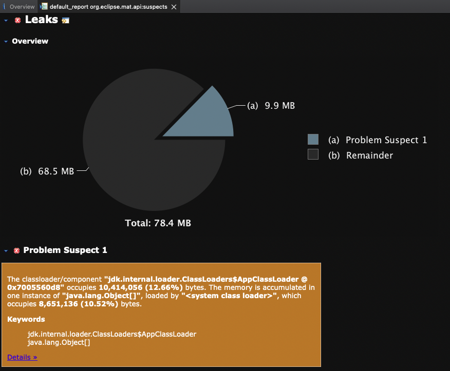 로컬에서도 10,000개의 요청을 반복해서 보낸 후 힙덤프를 떴다.