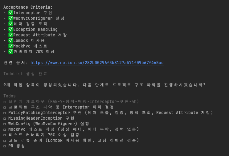 - Acceptance Criteria → Todo: 요구사항을 작업 단위로 쪼갬