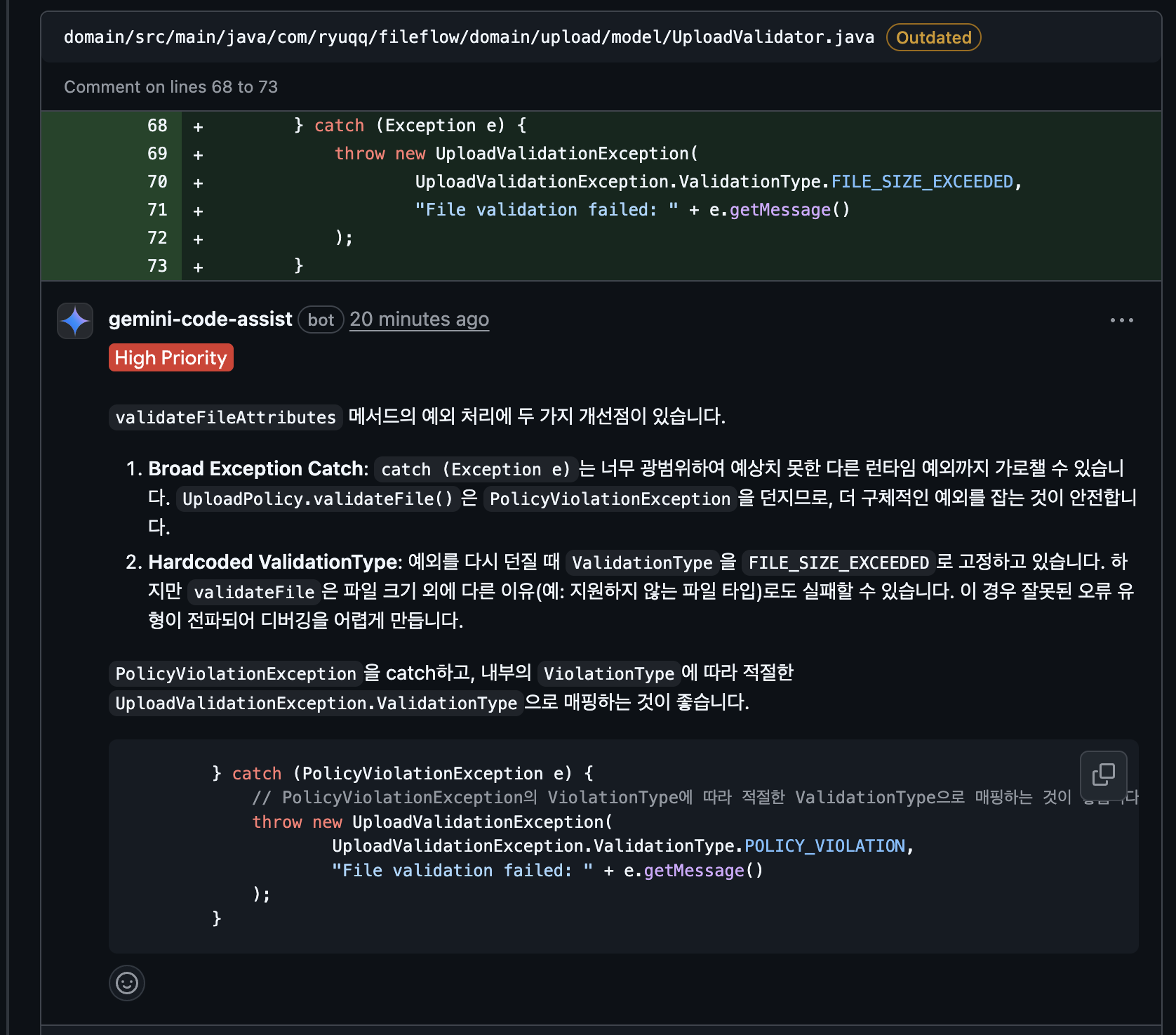 # 현재 PR의 Gemini 리뷰 분석